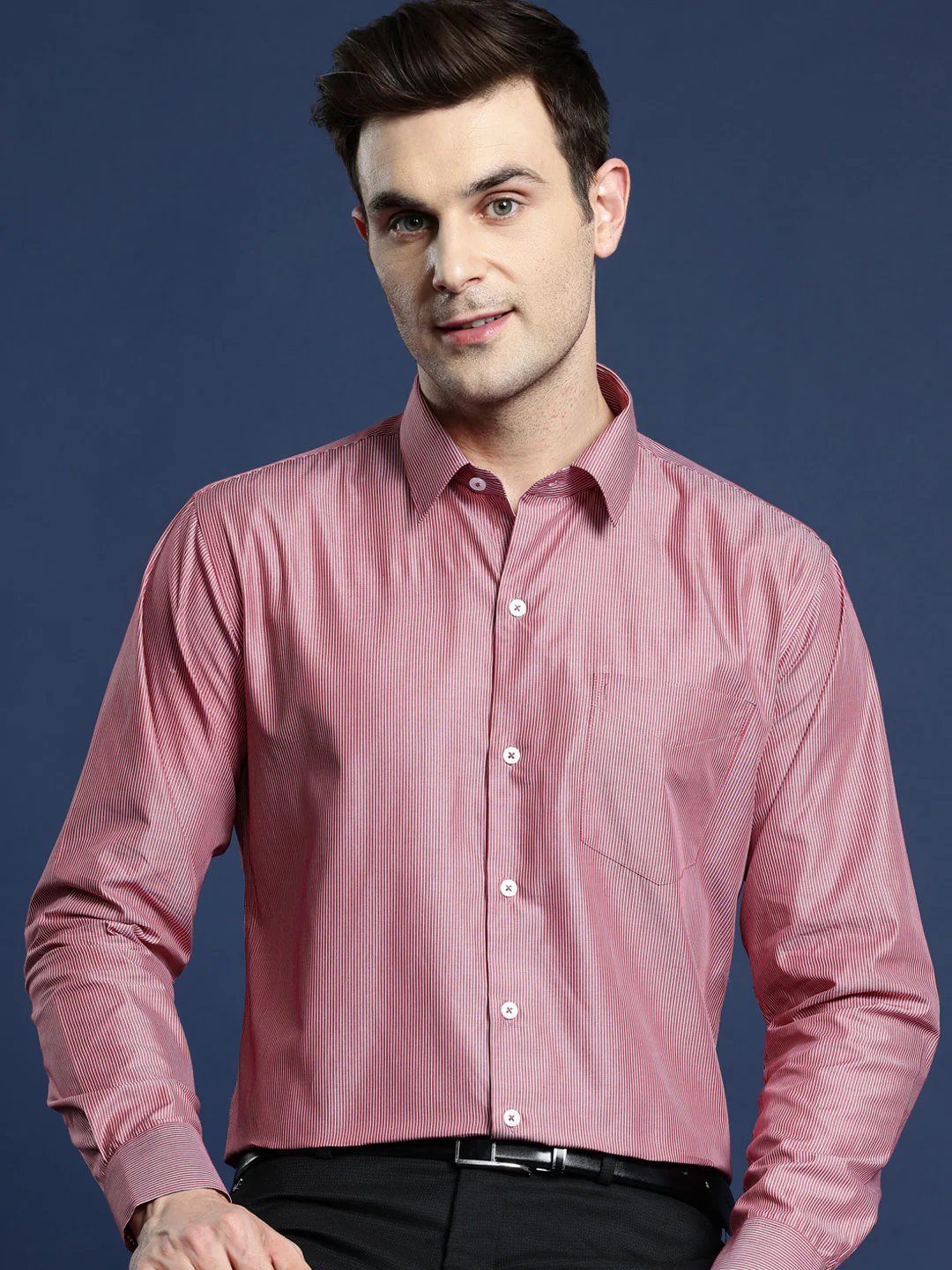Be the first to review “Men Red PinStriped Pure Cotton Slim Fit Formal Shirt”