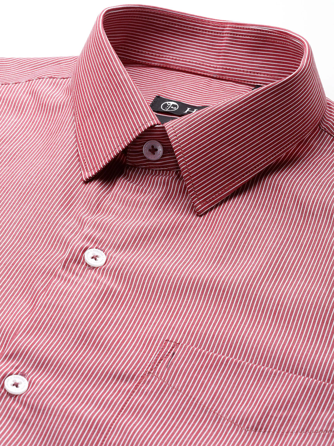 Hancock Men Striped Slim Fit Pure Cotton Formal Shirt with Long Sleeves, Spread Collar, Button Placket, and Curved Hem. This red and white pin-striped shirt from Hancock is made from the finest quality of skin-friendly pure cotton fabric that will keep you cool the entire summer season.
